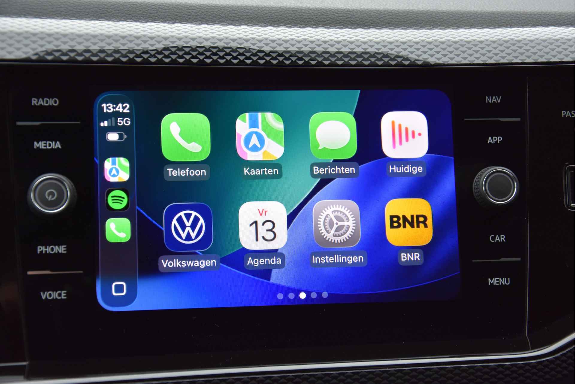 Apple CarPlay en Android Auto voor gebruik van apps zoals Spotify, WhatsApp, navigatie (Google Maps, Kaarten, Waze, Flitsmeister), Bluetooth voor handsfree bellen en muziek streamen, USB- en SD-aansluitingen, enzovoort.