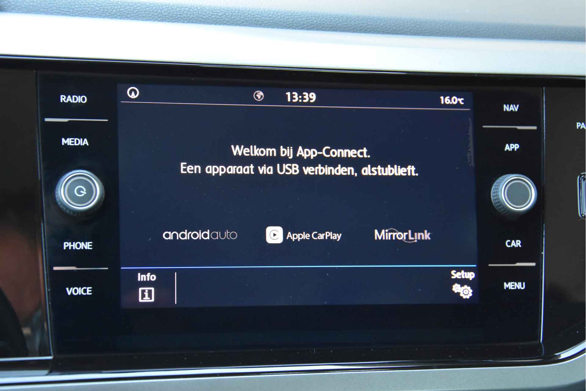App.connect voor AppleCarplay en AndroidAuto voor oa; Spotify, Whatsapp, navigatie met Googlemaps, Kaarten of andere. Flitsmeister, Waze enz.