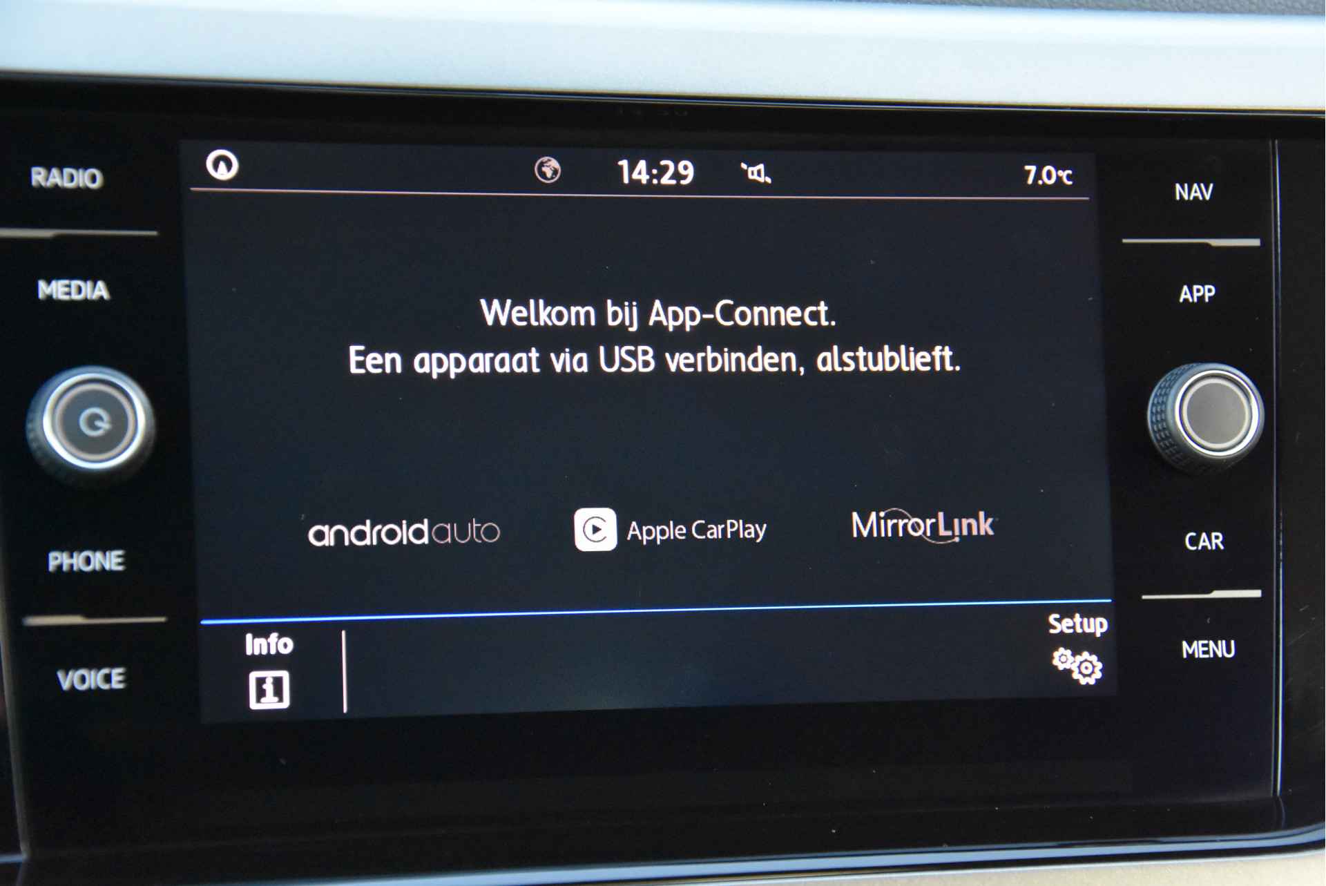 App.connect voor AppleCarplay en AndroidAuto voor oa; Spotify, Whatsapp, navigatie met Googlemaps, Kaarten of andere. Flitsmeister, Waze enz.
